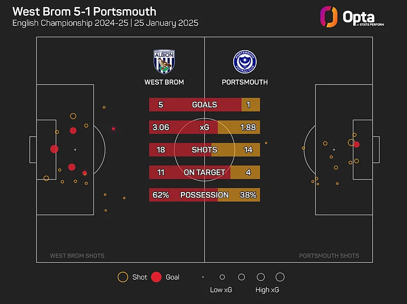 Tony Mowbray marked his return to the Hawthorns in stunning fashion, leading West Bromwich Albion to a 5-1 thrashing against lowly Portsmouth. (More Football News)