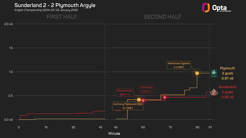 Seconds later, however, Sunderland were level through Wilson Isidor, who brilliantly turned home Trai Hume's delivery into the box for his ninth Championship goal of the season.