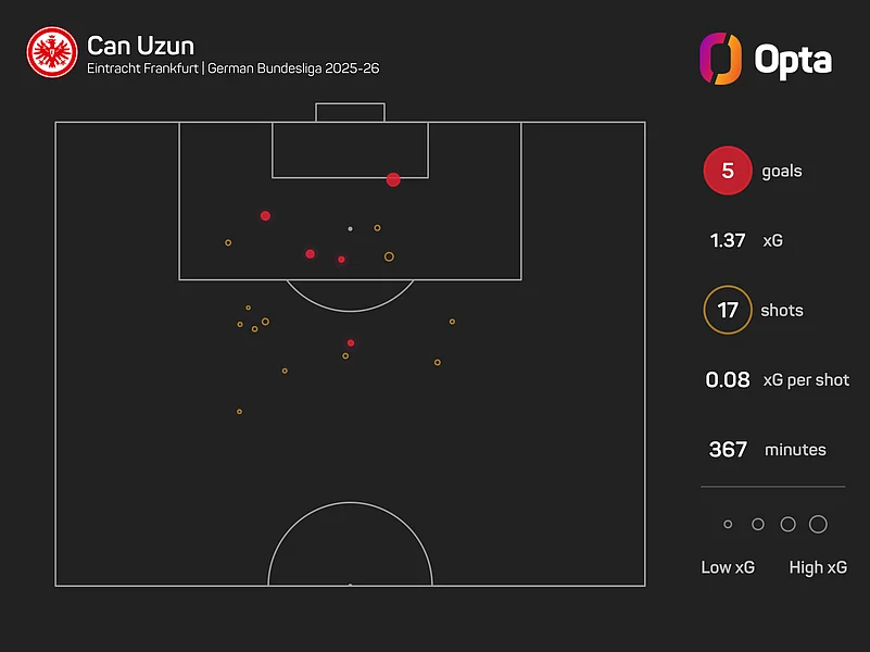 Nineteen-year-old Uzun has scored in each of Eintracht's five games in the Bundesliga this season, including in a remarkable 6-4 win at Borussia Monchengladbach last week.