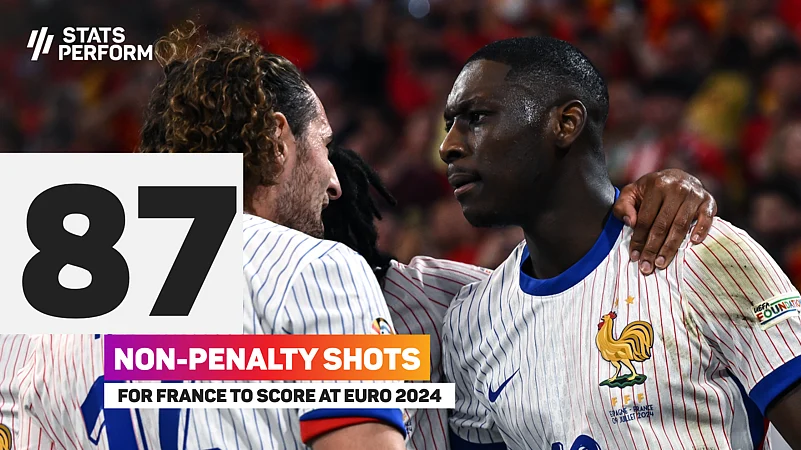 Les Bleus only scored their first non-penalty goal at Euro 2024 (excluding own goals) through Kolo Muani's opener, with their 87th shot from such situations.