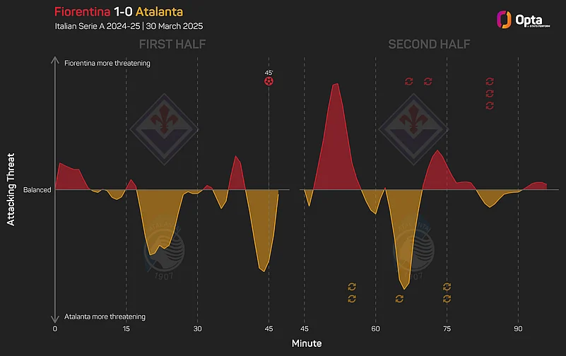 In truth, Fiorentina looked the more likely scorers even at 1-0 up after the break, when they had 10 shots to Atalanta's five.