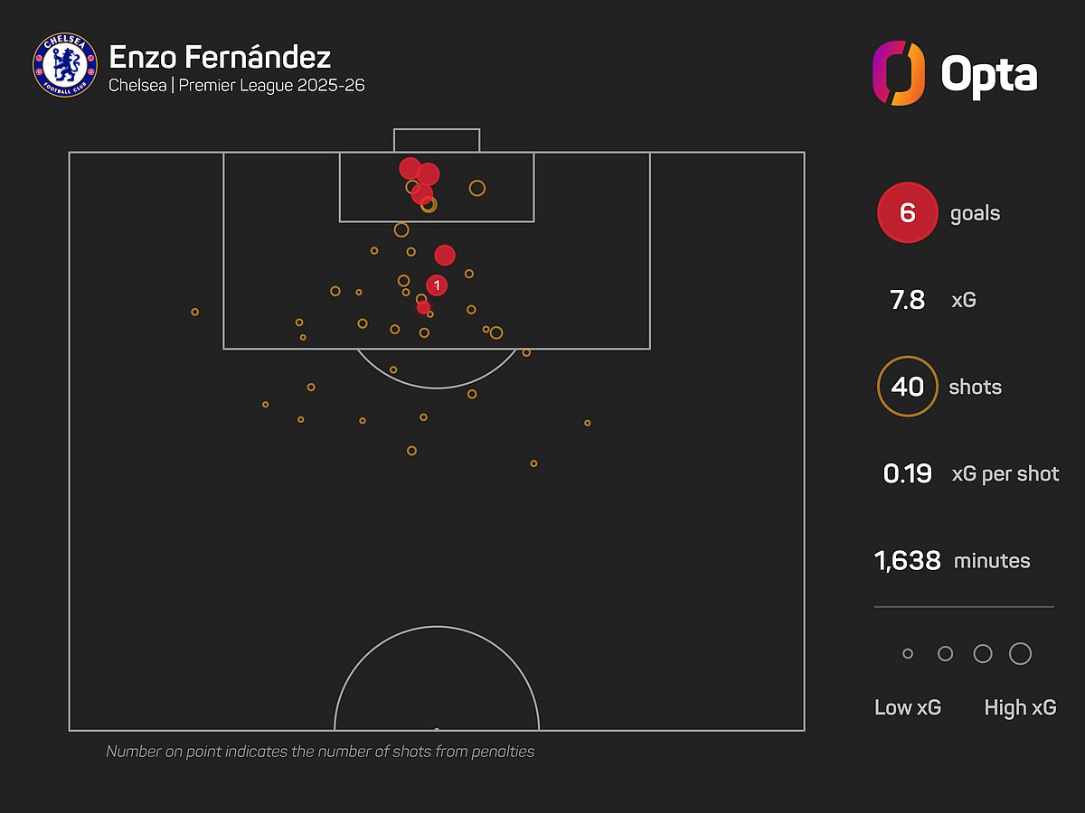 Among central midfielders, only Bruno Guimaraes (seven) has scored more Premier League goals this season than the Argentine, who could also score in three successive appearances in the competition for the very first time.