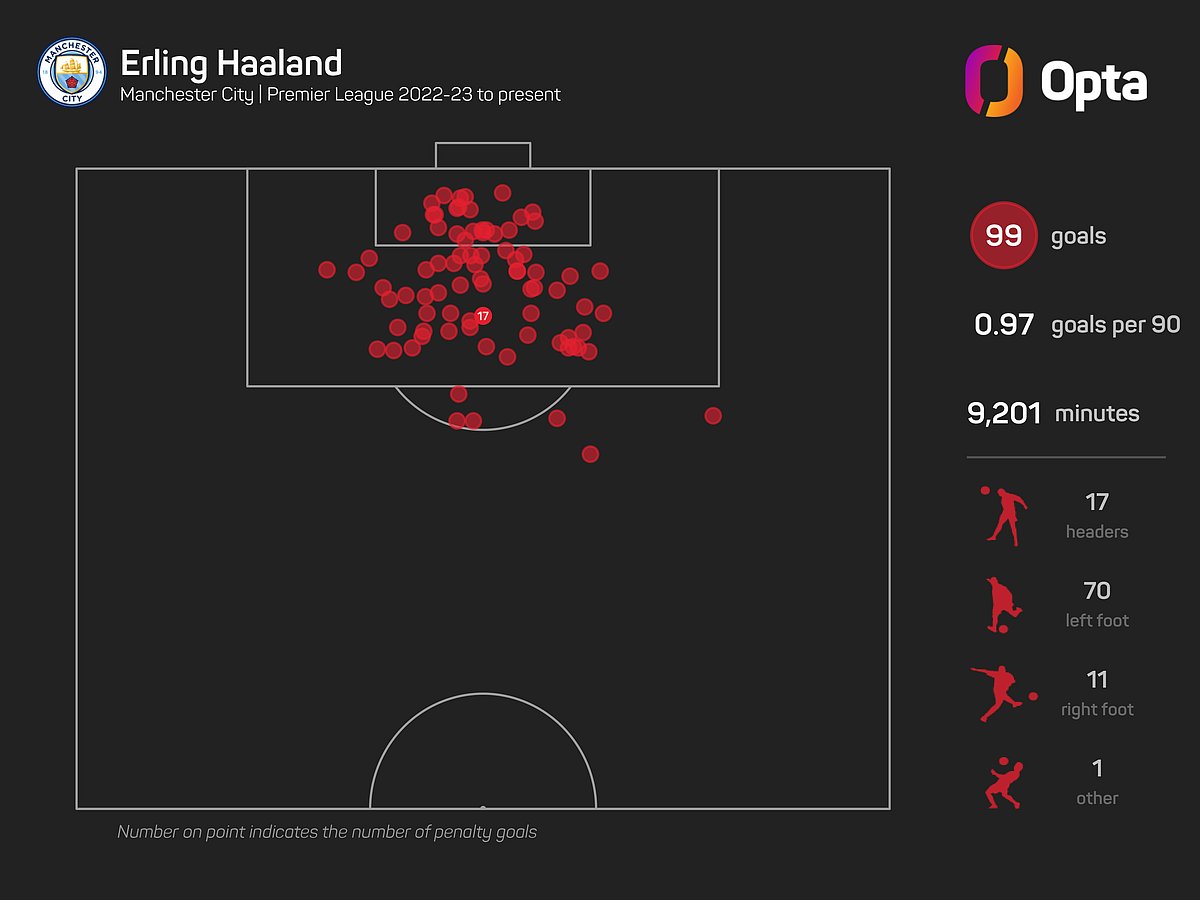 Haaland is also targeting his 100th Premier League goal, after being kept quiet by Newcastle United and Leeds United.