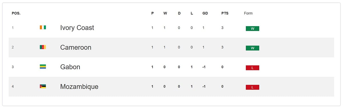 Gabon Vs Mozambique LIVE Score: Group F Standings