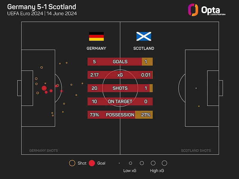 But it was not all about the flair of youth at the Allianz Arena, where the only blemish on Germany's copybook was an Antonio Rudiger own goal as Scotland mustered a meagre 0.01 xG and failed to have a shot on target.