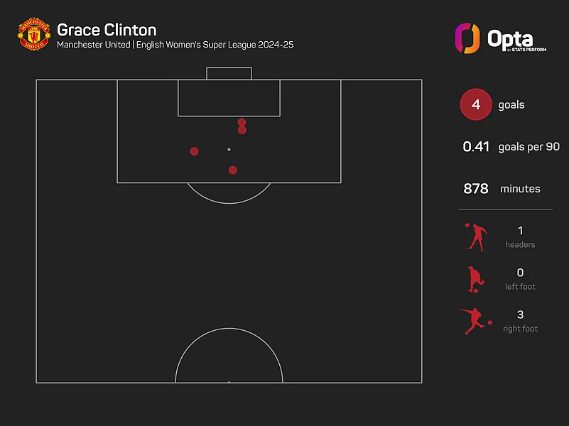 She marked her first United appearance with a goal against West Ham in the Women's Super League in September and has netted four times in the league this term, outperforming her 1.98 expected goals (xG).