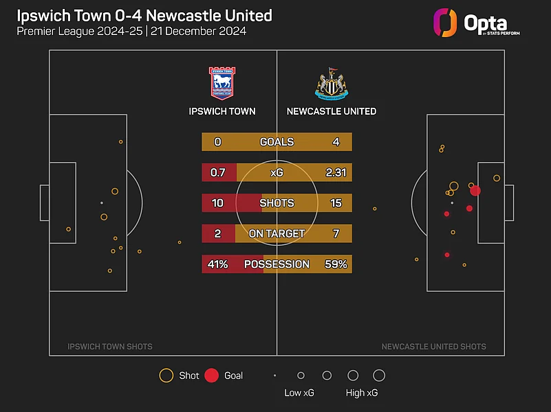 Having beaten Leicester City 4-0 last week, Newcastle triumphed by the same scoreline again at Portman Road, with Jacob Murphy joining the outstanding Isak among the goals.