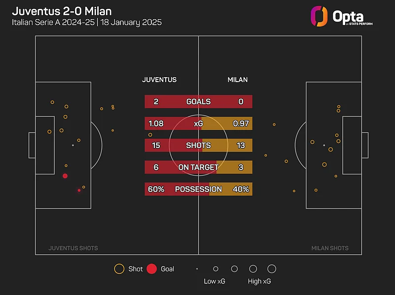Milan managed just three attempts on Michele Di Gregorio's goal, ending the contest with an expected goals (xG) total of 0.97 at the Allianz Stadium.