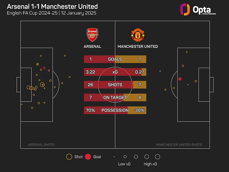 But United were made to work for their win, registering just seven shots during the contest compared to Arsenal's 26, which accumulated an expected goals (xG) total of 3.22.