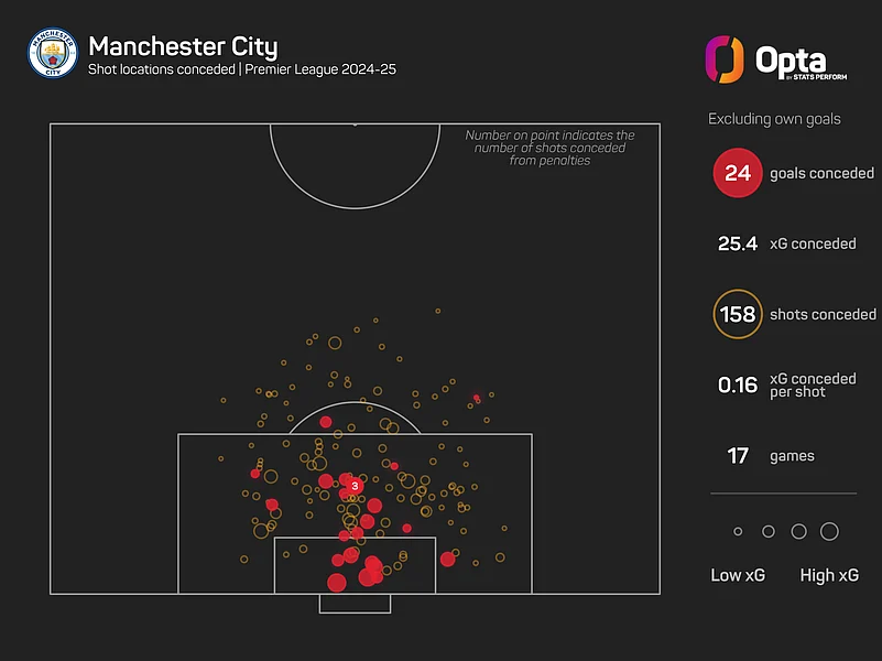 City did go into last Christmas in fifth place, and still recovered to win the title. Indeed, only twice under Guardiola (2017-18 and 2020-21) have they actually been top on Christmas Day, but a comeback this season seems out of reach.