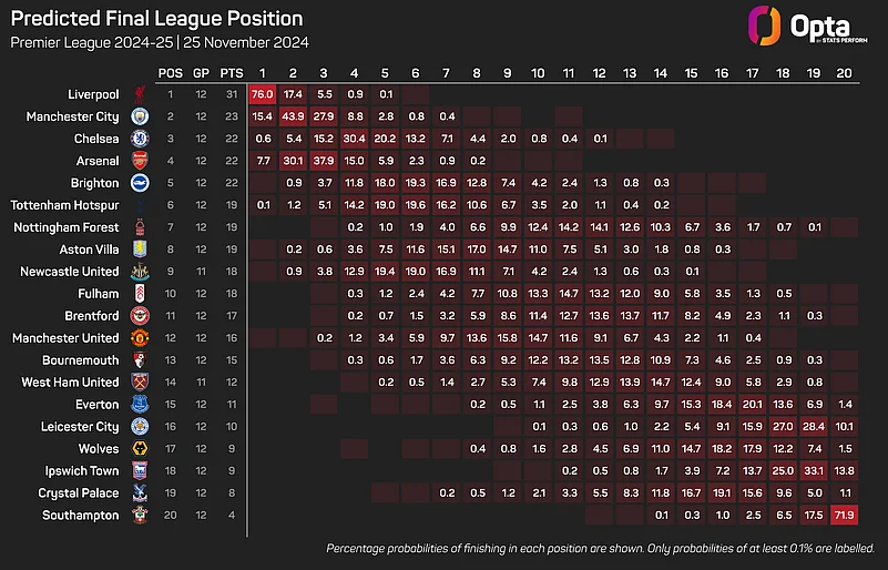 Three of those losses have come in the Premier League, which Opta's supercomputer now gives Pep Guardiola's side just a 15.4% chance of winning.