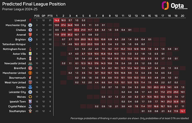 According to the Opta supercomputer, they now have just a 12.6% chance of retaining the title.