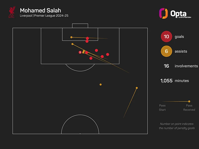 If this is to be Salah's last campaign at Liverpool, he is doing his very best to go out on a high note. As well as having the most goals and assists combined in the Premier League this season (16), Salah’s goal involvements have also been worth a league-high 17 points to Liverpool this term.