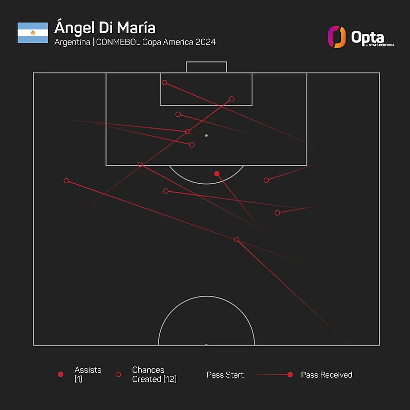 Di Maria produced an excellent performance as he led all Argentina players for chances created (three), dribbles (five) and possessions won in the final third (two).