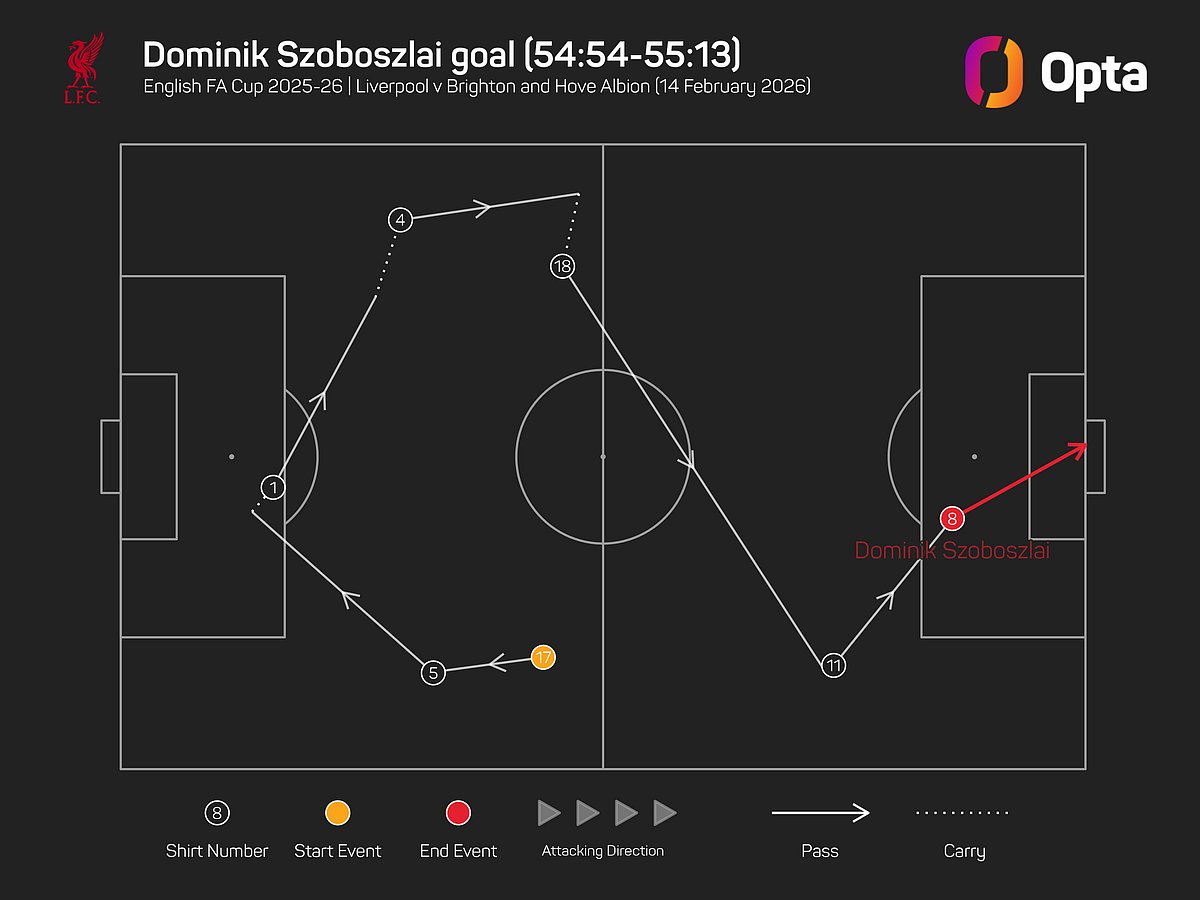 Brighton actually outshot Liverpool by 17 to 13, though their efforts only added up to 1.22 expected goals (xG) and the Reds finished with 1.82 xG, a figure that was boosted by Salah's spot-kick.