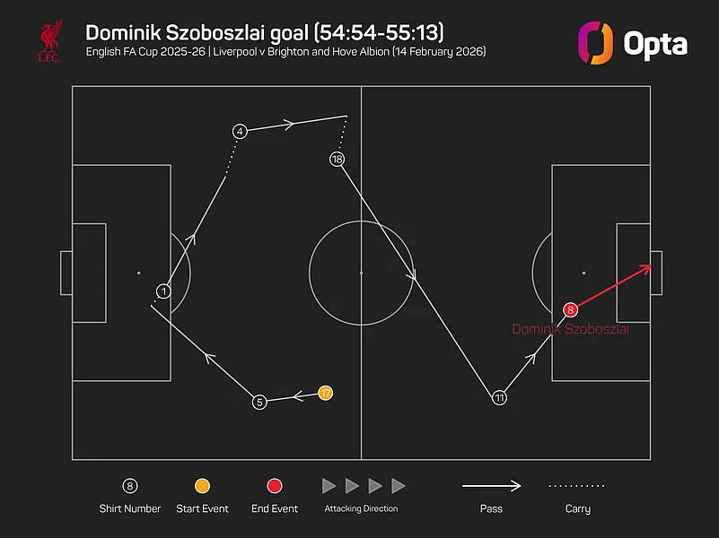 The Reds' second goal was a thing of beauty as Kerkez floated a cross-field pass to Salah, who cushioned the ball into the path of Szoboszlai with his instep. Racing onto the ball on the right side of the area, the Hungarian blasted a rasping shot into the far corner.