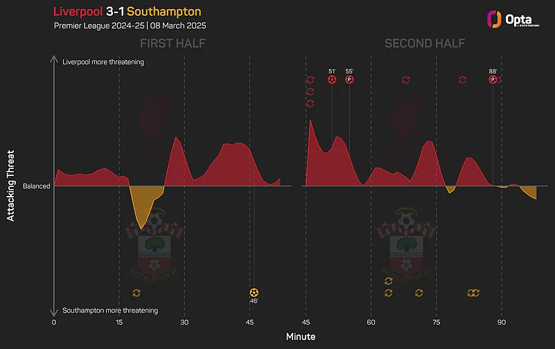 Alexis Mac Allister, Kostas Tsimikas and Harvey Elliott entered the fray at the break, by which point Liverpool had managed two shots on target from 29 touches in the Saints area.