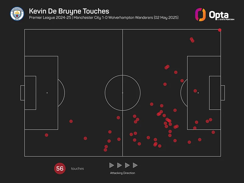 It could be De Bruyne's final goal at the Etihad Stadium, with City only having one more home game – against Bournemouth on May 20 – before he leaves as a free agent.