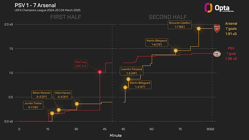 No player has scored more goals for Arsenal in 2025 than Nwaneri (four - level with Mikel Merino), while his strike against PSV in the Champions League on Tuesday saw him become the third-youngest player to score a knockout stage goal in the competition (17 years and 348 days).