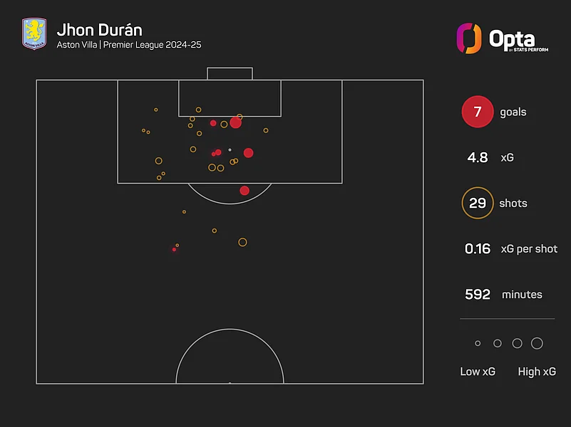 Duran is Villa's top scorer across all competitions, scoring 12 goals in 26 appearances, with three of those strikes coming in the Champions League this campaign.