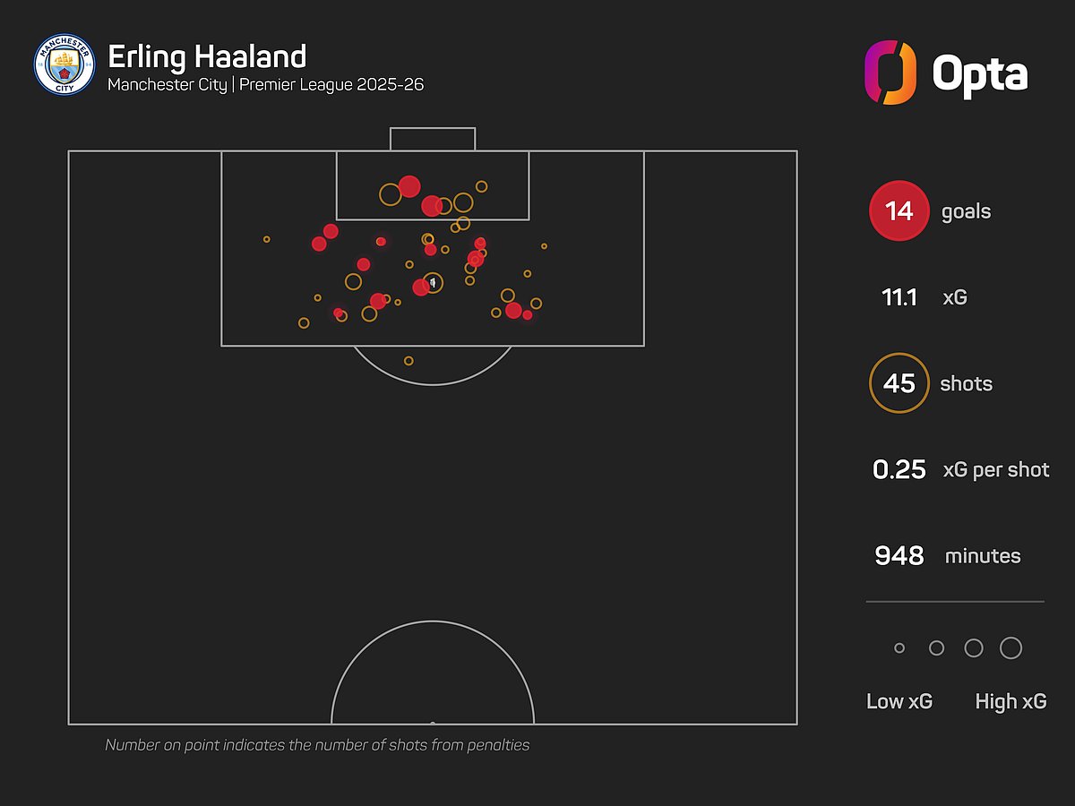 And given how much City rely on Haaland to score their goals in the league (the striker has netted 14 of their 21 goals this season, a 66.7% share), it could be a case of stop Haaland, stop City.