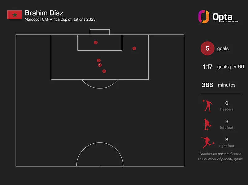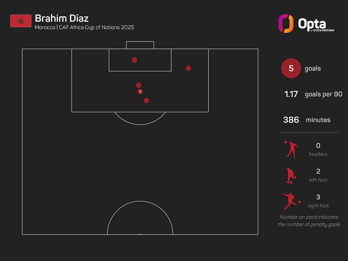 Brahim Diaz has scored in all five matches at the 2025 AFCON and could become the first player in the competition's history to score in six different matches in a single edition.
