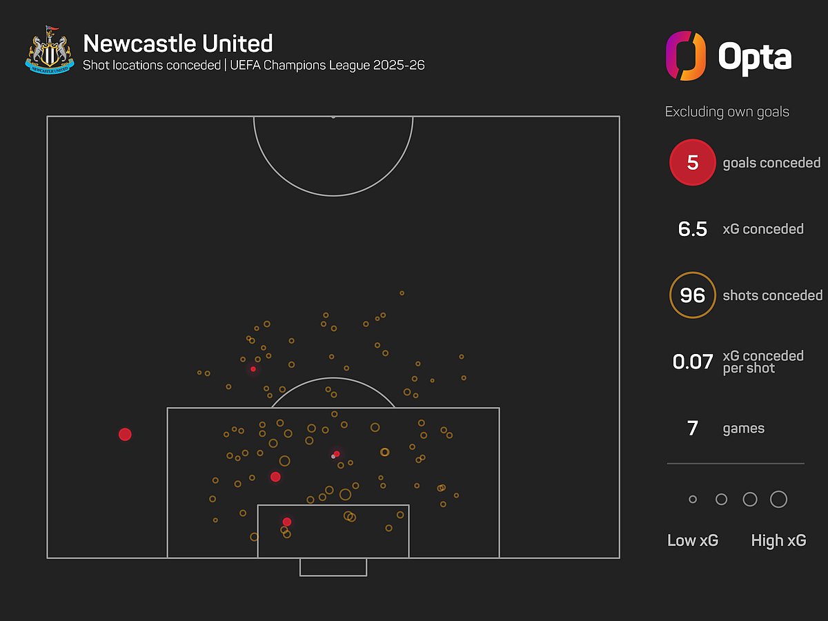 Newcastle have kept four clean sheets in the Champions League this season, which trails only the Gunners and Tottenham.