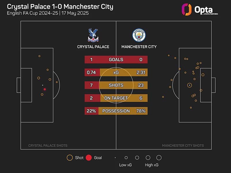 City were also stunned in the FA Cup final on Saturday as Crystal Palace beat them 1-0 to claim their first-ever major trophy.