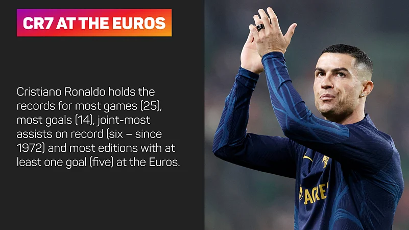 The veteran forward holds the records for most games (25), most goals (14), joint-most assists on record (six – since 1972) and most editions with at least one goal (five) at the European Championships. Ronaldo is also the European player with the most appearances at major tournaments, with 47.