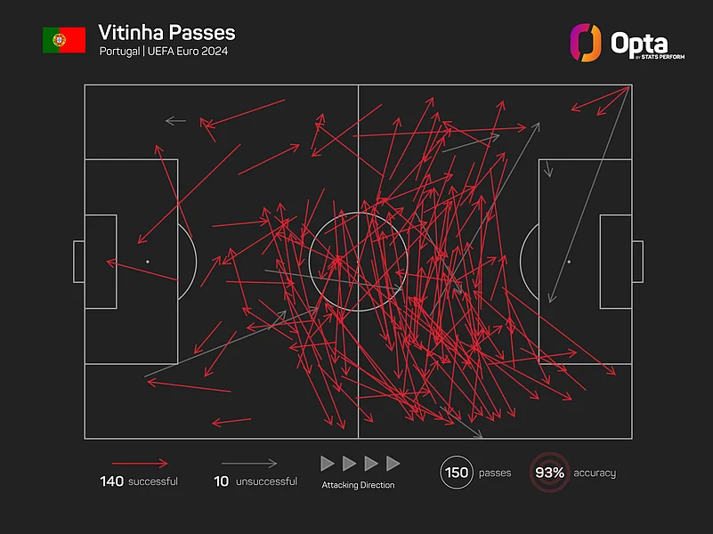 Another player to watch in Selecao colours could be Vitinha, who leads all of his team-mates for line-breaking passes (29) at this tournament.