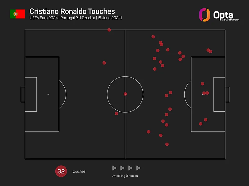 Ronaldo – the all-time leading scorer at the Euros with 14 goals – played all 90 minutes in the Selecao's opening match, becoming the first player to feature at six different editions of the tournament (2004, 2008, 2012, 2016, 2020 and 2024).