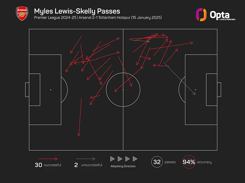 Lewis-Skelly ended the contest having won the joint-most tackles (three along with Jurrien Timber) and interceptions (two along with Thomas Partey) against Spurs.
