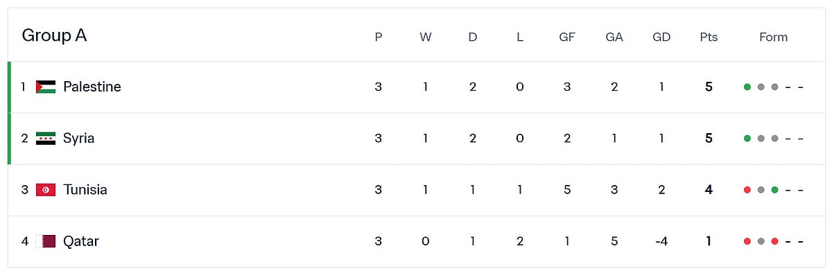 Qatar Vs Tunisia Live Score, FIFA Arab Cup 2025: Final Group A Standings