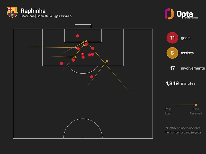 Raphinha scored twice in that match, taking his tally of LaLiga goal contributions for the season to 17, a joint-league high alongside Lewandowski.