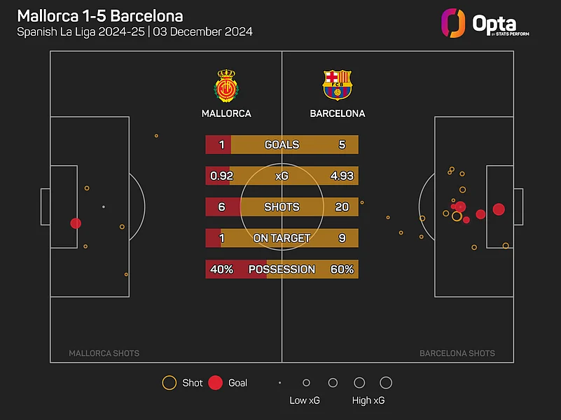 Captain Raphinha scored twice as they trounced Mallorca, with Yamal assisting his second as one of two chances he created for team-mates.