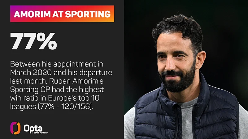 Amorim delivered two Primeira Liga and two Taca da Liga trophies during his time at the Estadio Jose Alvalade, recording a 71% win rate through 231 matches at the helm (164 wins, 34 draws, 33 losses).
