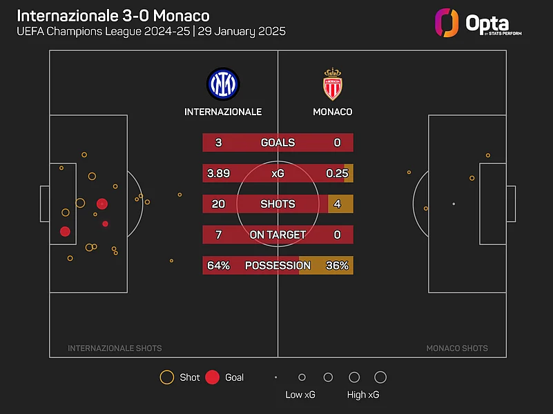 Inter eased to a 3-0 win over Monaco, who saw Christian Mawissa sent off after 12 minutes, earning them a fourth-placed finish in the 36-team league standings.