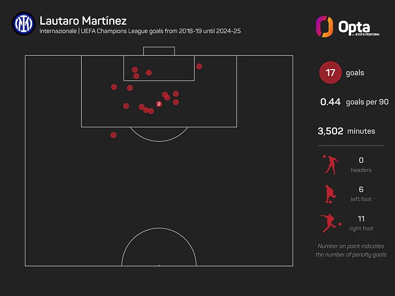 Martinez’s hat-trick took him level with Sandro Mazzola (17) as Inter's leading scorers in European Cup history. It was also the club's first Champions League hat-trick since Samuel Eto’o netted one against Werder Bremen in September 2010.