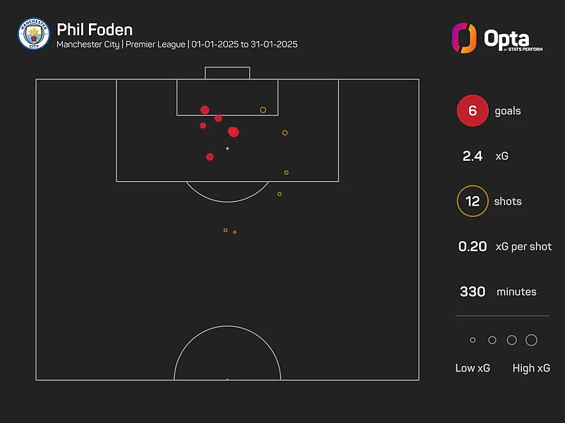 Foden has found form recently, following a slow start to the campaign. He scored more Premier League goals in January than any other player, netting six times from six shots on target.