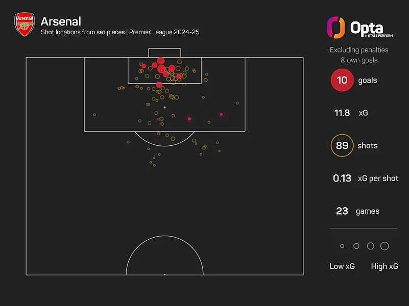 City, however, have only conceded two goals from set-pieces excluding penalties in 2024-25, the joint-fewest in the competition alongside Brentford.