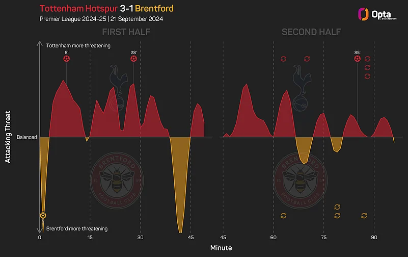 Tottenham responded to back-to-back Premier League defeats with a much-needed 3-1 victory over Brentford last week, with Dominic Solanke, Brennan Johnson and James Maddison netting after Bryan Mbeumo opened the scoring within 23 seconds.