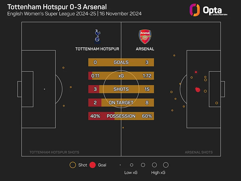 Beth England drew a full-stretch save from Daphne van Domselaar as Tottenham briefly improved, but Arsenal killed the contest 66 minutes in, substitute Stina Blackstenius breaking onto Mariona Caldentey's delicate throughball to finish when one-on-one.
