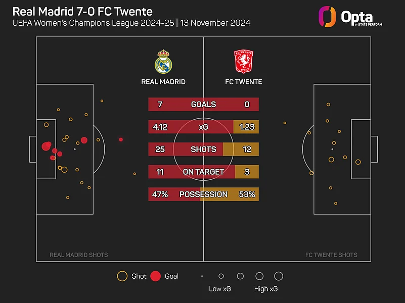 Real Madrid had six different goalscorers as they trounced Twente 7-0 in the Women's Champions League on Wednesday, while Wolfsburg beat Galatasaray 5-0. (More Football News)