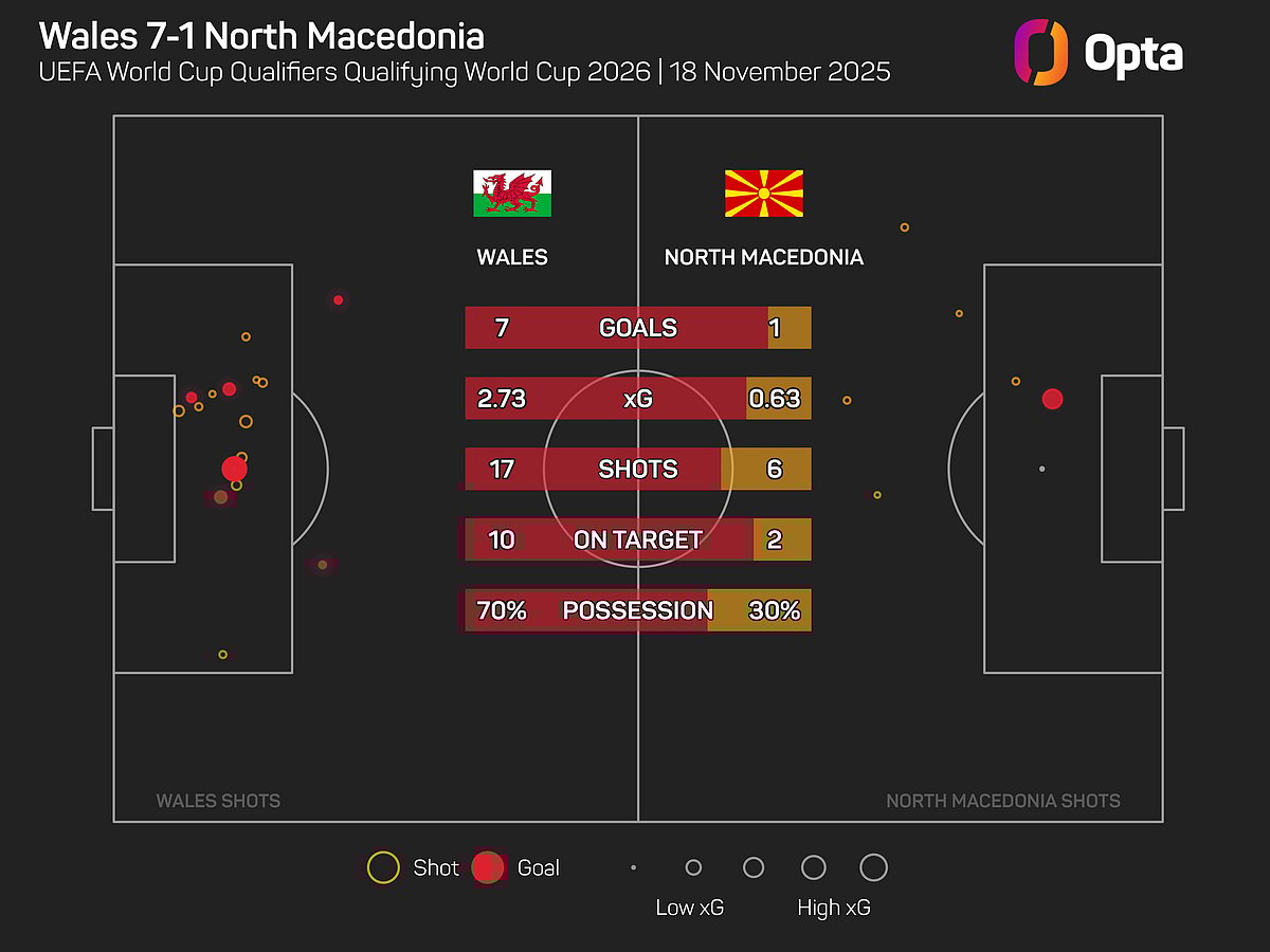 Wales scored 7+ goals in a match for only the fifth time in their history and for the first time since October 1978 – a 7-0 victory against Malta in a European Championships qualifier.