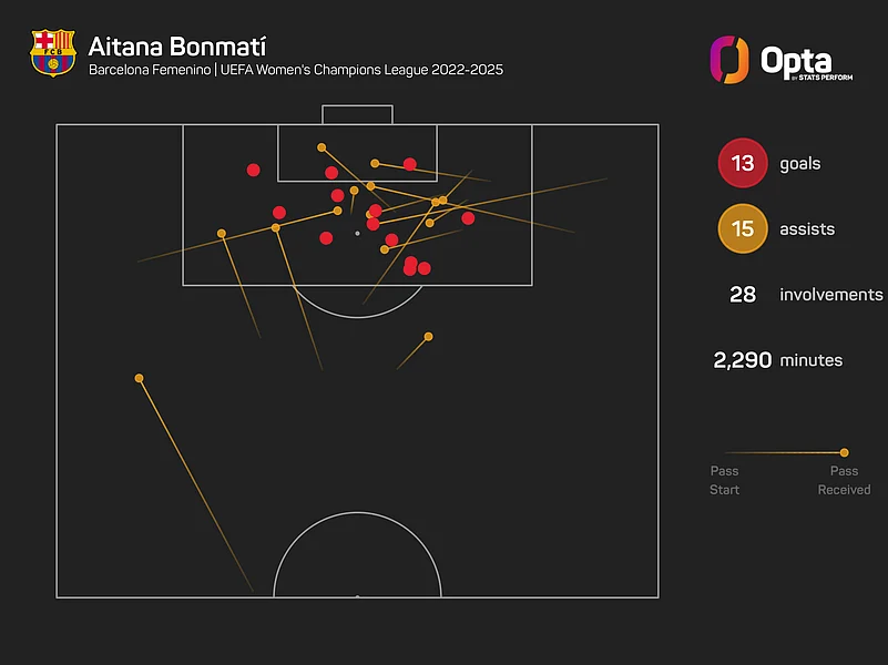 And let’s not forget Ballon d'Or winner Aitana Bonmati, who has been directly involved in 28 goals in 28 UWCL matches over the last three seasons (13 goals, 15 assists).