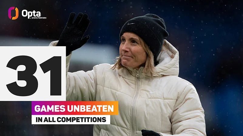 Chelsea, with a record-setting 32nd unbeaten game firmly in their sights, are given a 43.6% chance of securing the win, with the draw given a 25.2% chance as they bid to make history. They are currently level with their own unbeaten record for a WSL team, set in September 2020.