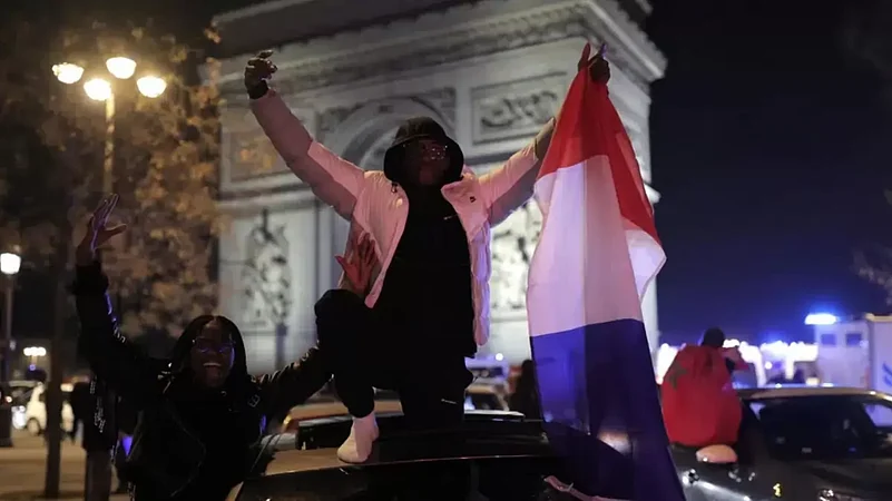 Elsewhere in France, crowds in Paris and other cities erupted in shouts of joy as France advanced to the World Cup final. The displays were relatively restrained. Disappointed Morocco fans mingled with the exuberant supporters of the winning team, paying tribute to the African country’s unprecedented achievement.