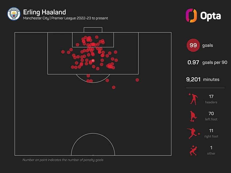Haaland is also targeting his 100th Premier League goal, after being kept quiet by Newcastle United and Leeds United.