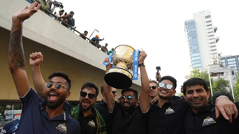 Gujarat Titans on Monday took out a victory parade on an open-top bus to celebrate their IPL 2022 title triumph in a memorable maiden season. Earlier in the day, Gujarat Chief Minister Bhupendrabhai Patel hosted the team. The Hardik Pandya-led Titans defeated Rajasthan Royals by seven-wicket in the Ahmedabad final on Sunday.