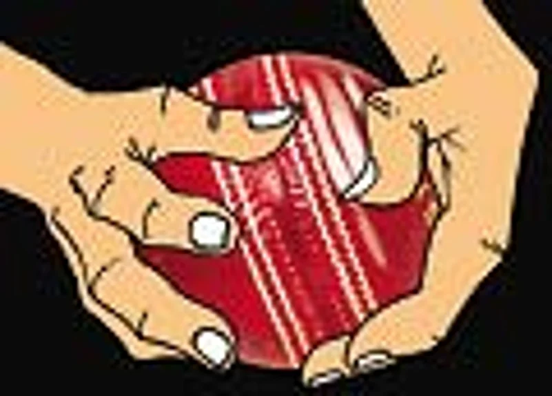 Sandpaper strapped to a plaster on the non-bowling hand or to wicket-kepeer's gloves